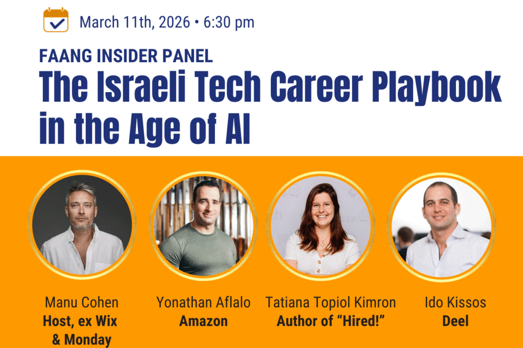 We brought insiders from Amazon, Deel and more to break down how to build a durable, defensible career advantage in Israeli tech. This AlumnIsrael event will be hosted at Amazon (Tel Aviv) and